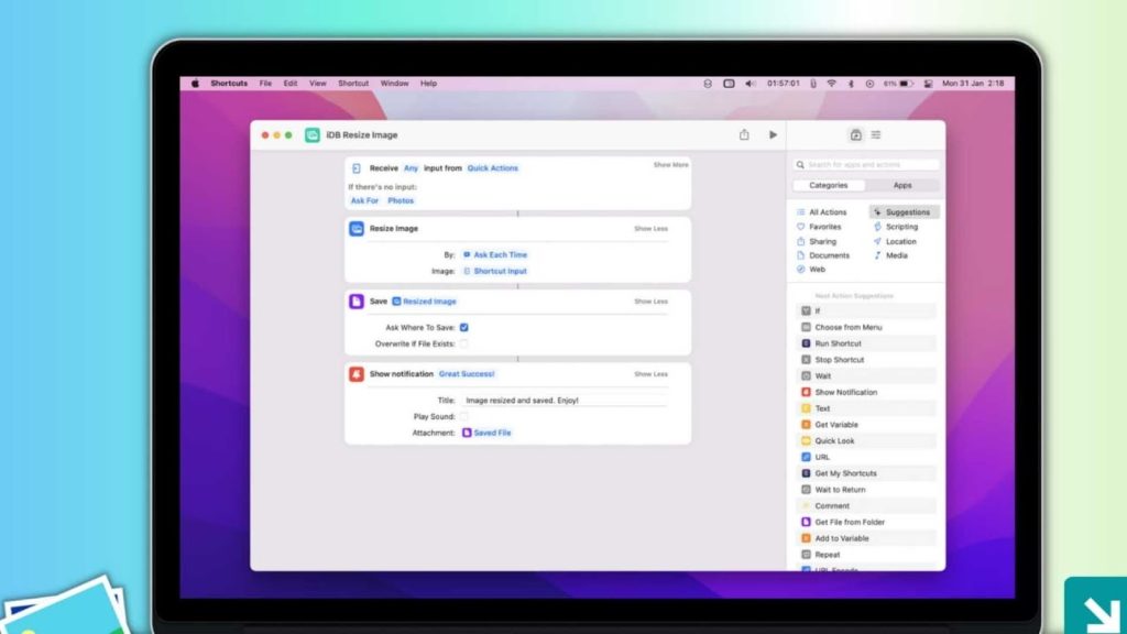 To start, open Automator from your Applications folder. Create a new “Quick Action” or “Service,” depending on your macOS version. Set the workflow to receive image files in Finder. Then, in the left panel, search for “Scale Images” and drag that action into your workflow area. Automator will ask if you want to add a “Copy Finder Items” step first-say yes if you’d like to protect your originals.