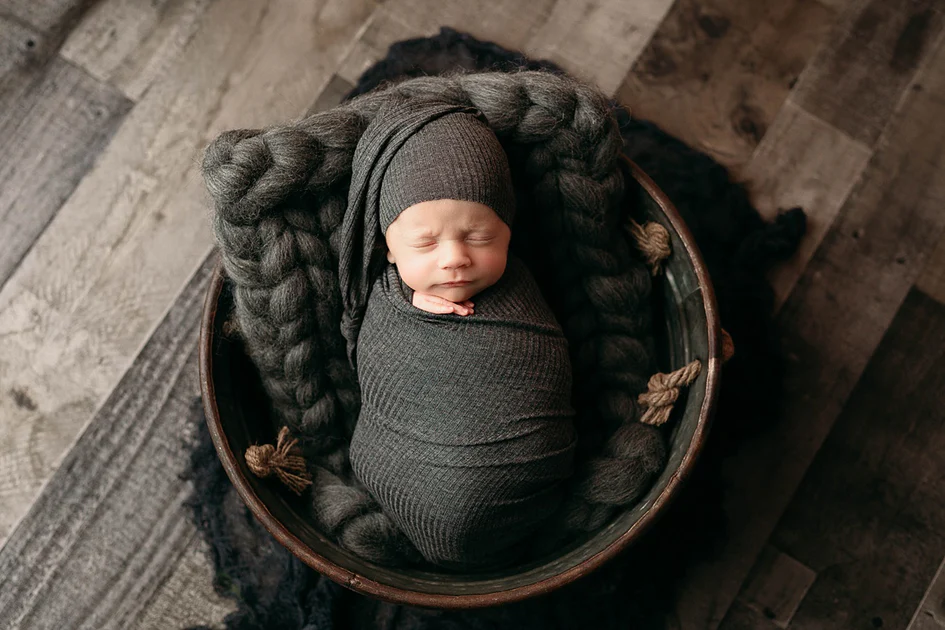 When the baby is wrapped this way, they become a perfect little package. You can place them in baskets, bowls, or even on a plain backdrop. This is a staple in the world of newborn photography poses because it is safe, versatile, and allows for the use of various colorful wraps and layers. It also ensures the baby’s limbs are tucked away, allowing the viewer to focus entirely on the sweet, sleepy face.