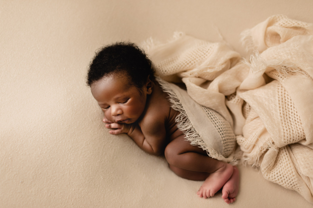 To make this pose stand out, you can cross the baby’s ankles or tuck their knees closer to their chest. Because this position is stable, it provides a great opportunity to use different textures, like chunky knit blankets or faux fur, to add visual interest. Integrating variety into your newborn photography poses ensures that the final gallery feels rich and diverse rather than repetitive.