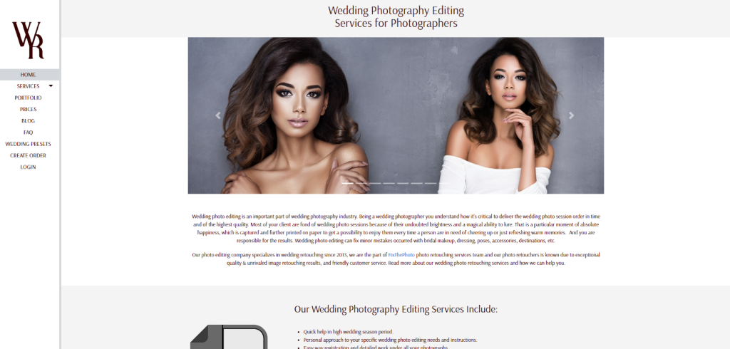 FixThePhoto works with photographers from different niches, including weddings, portraits, and commercial photography. For wedding professionals, the service offers decent consistency and fairly predictable turnaround times. The platform is easy to use, which makes it suitable for photographers outsourcing editing for the first time.